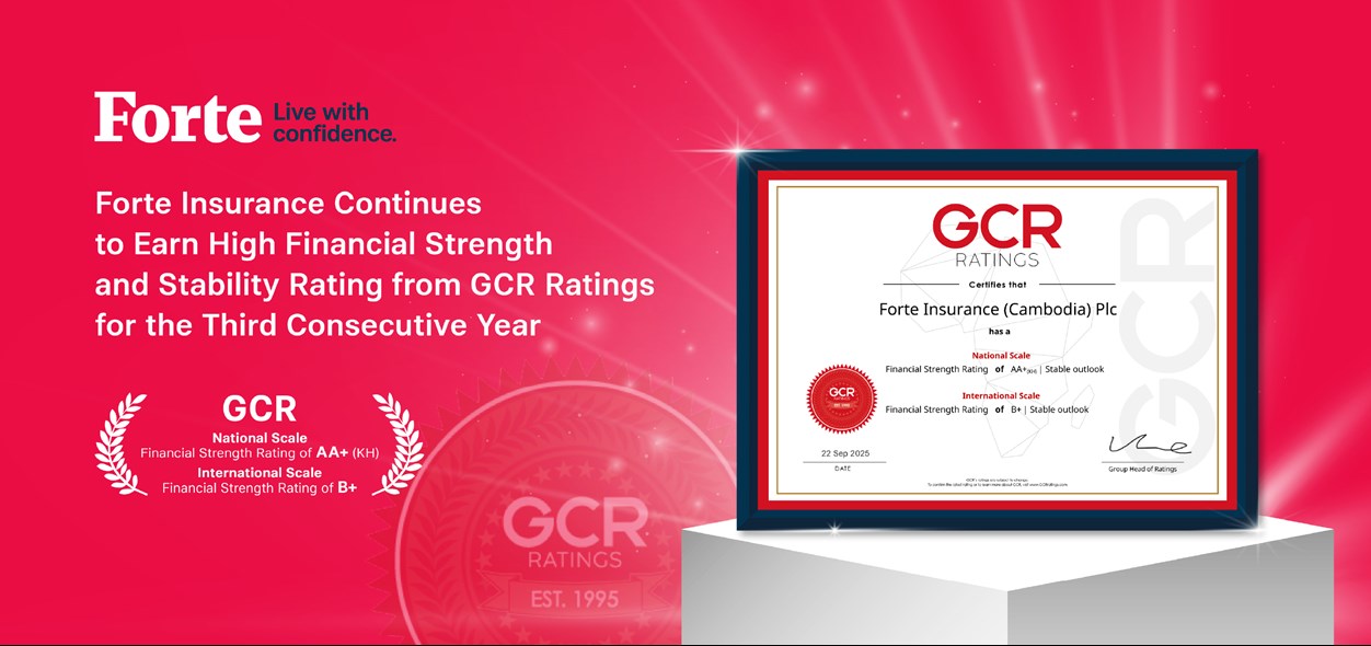 Mr. Suy Channtharong, Chief Executive Officer of Forte Insurance, commented: “Earning the high-level GCR rating once again is concrete evidence of Forte’s strong financial foundation. Furthermore, this strength is not merely about figures or trust alone; it presents an opportunity for all of us to increase investment in digital technology, with the aim of improving service quality and refining insurance products that address the daily needs of our customers. Forte’s long-term vision is clear: to protect and empower individuals and businesses, thereby contributing to economic stability and strengthening confidence from the international community.”